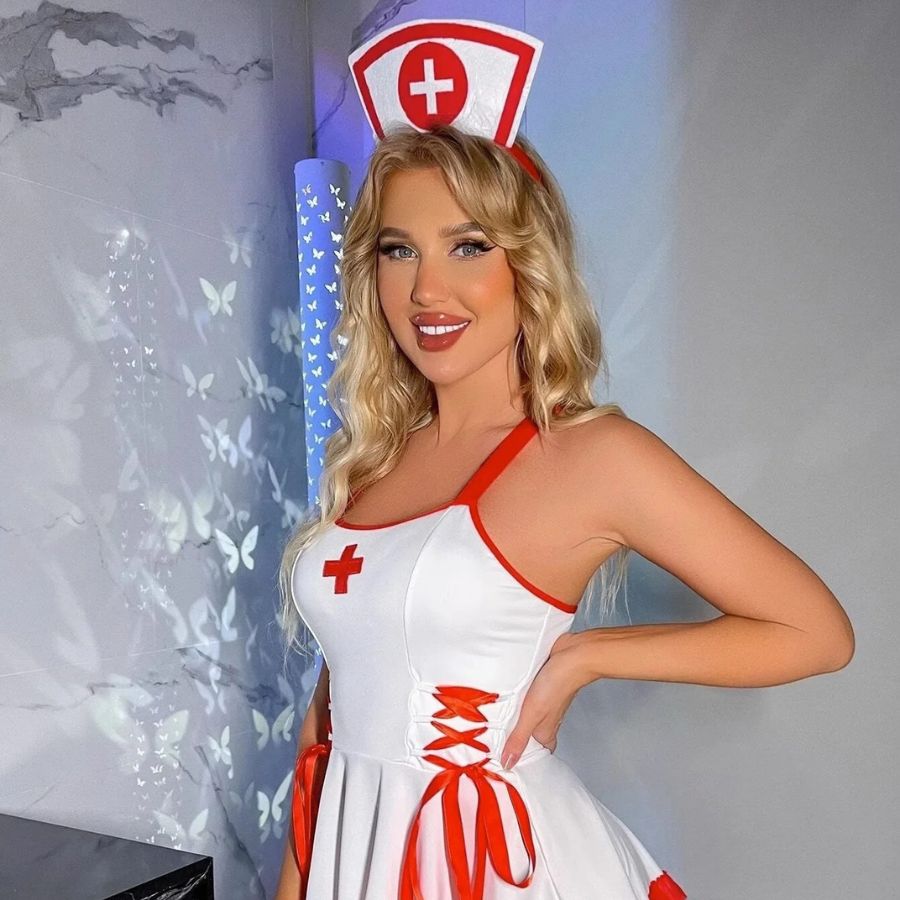 Jouez la carte de la séduction avec ce déguisement infirmière sexy robe, mêlant espièglerie et élégance. Composé d’une robe blanche à bretelles croisées, ornée d’un laçage rouge satiné sur les côtés, ce modèle épouse la silhouette avec charme. La robe évasée à volants et la coiffe assortie complètent cet ensemble sexy, idéal pour une soirée roleplay inoubliable.