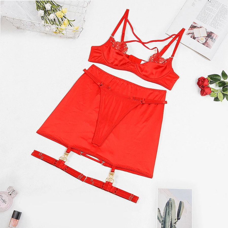 Sublimez vos courbes avec cet ensemble de lingerie jupe porte-jarretelle en satin, pensé pour révéler la femme fatale qui sommeille en vous. Le soutien-gorge à armatures dévoile subtilement la poitrine grâce à ses détails en dentelle et ses fines lanières croisées, tandis que la jupe satinée, ajustée et fendue à l’arrière, épouse parfaitement les hanches pour une silhouette irrésistible. Les jarretelles intégrées ajoutent une note ultra sexy et sophistiquée. Craquez pour cet ensemble de lingerie jupe porte-jarretelle en satin et explorez notre collection dédiée à la lingerie avec jupe pour encore plus de glamour.