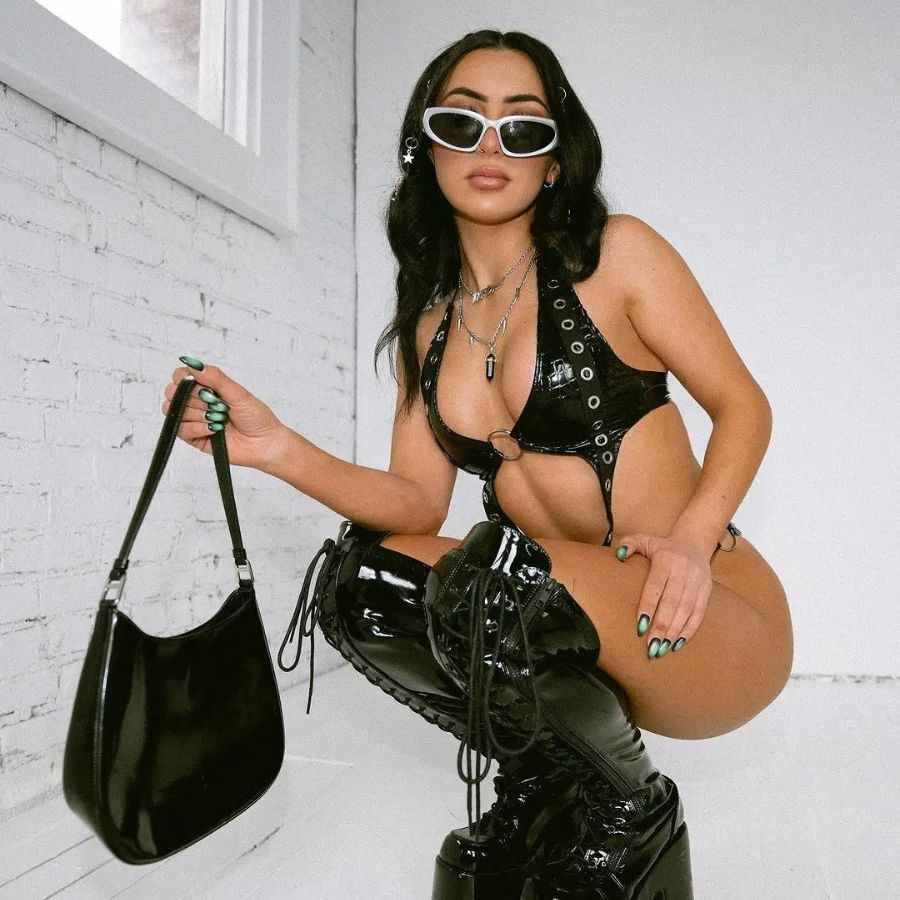 Libérez votre côté audacieux avec cet ensemble BDSM avec jupe noir en simili cuir, parfait pour affirmer votre sensualité et révéler votre pouvoir de séduction. Le soutien-gorge structuré à l’anneau central sublime la poitrine, tandis que la jupe transparente épouse les courbes pour une silhouette provocante. Le string assorti complète cette tenue dominatrice pour des jeux de rôle envoûtants.