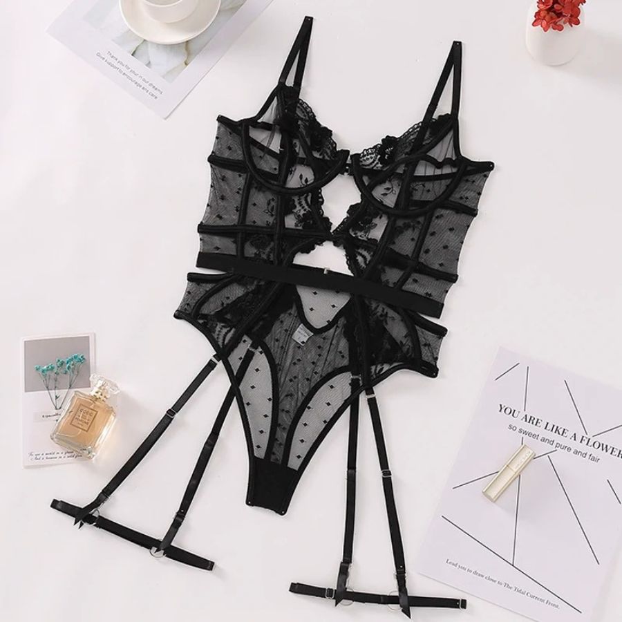 Sublimez votre silhouette avec ce body sexy porte-jarretelle en dentelle noire, symbole d’élégance et de sensualité. Le soutien-gorge à armatures offre un galbe naturel au décolleté, tandis que la dentelle brodée dévoile subtilement la peau pour un effet lingerie ultra sexy. La taille est cintrée pour souligner les courbes, et les jarretelles ajoutent une touche glamour irrésistible.