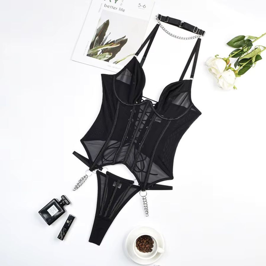 Sublimez votre silhouette avec cette guêpière en polyester noir, fusion parfaite entre audace et raffinement. Son corset structuré épouse vos courbes avec sensualité, offrant un maintien optimal et un décolleté irrésistible. Les détails métalliques renforcent son charme envoûtant. Cette guêpière sans jarretelle en polyester noir sexy est idéale pour une allure séduisante et affirmée. Découvrez d’autres pièces élégantes dans notre collection guêpière pour sublimer vos moments les plus intenses.